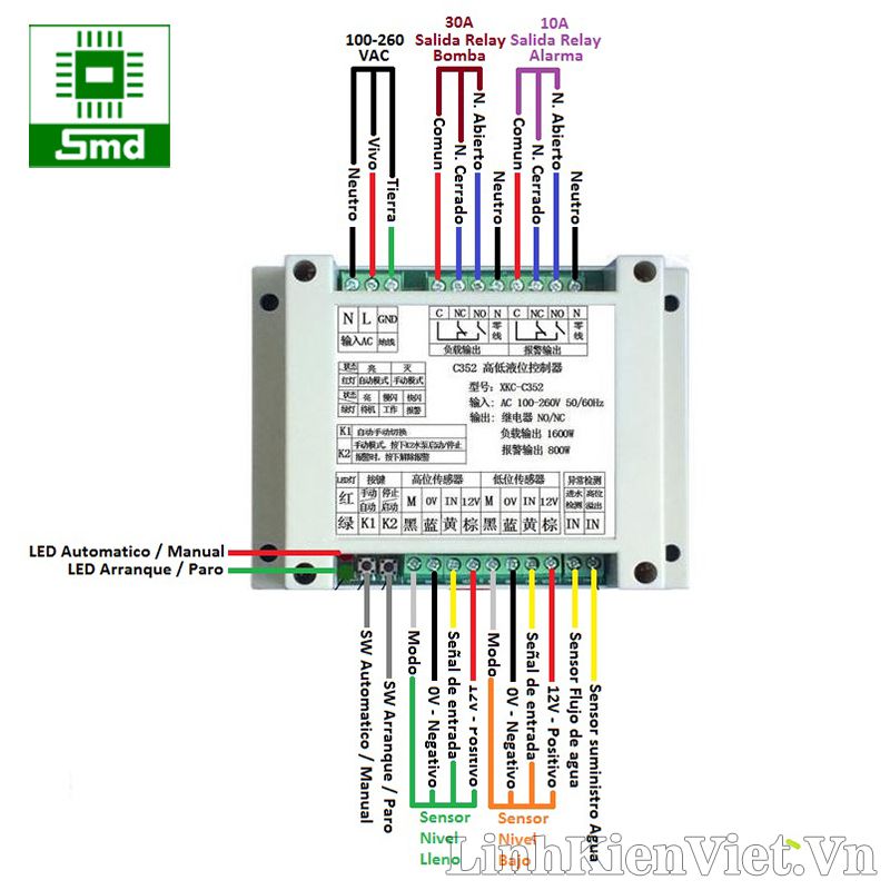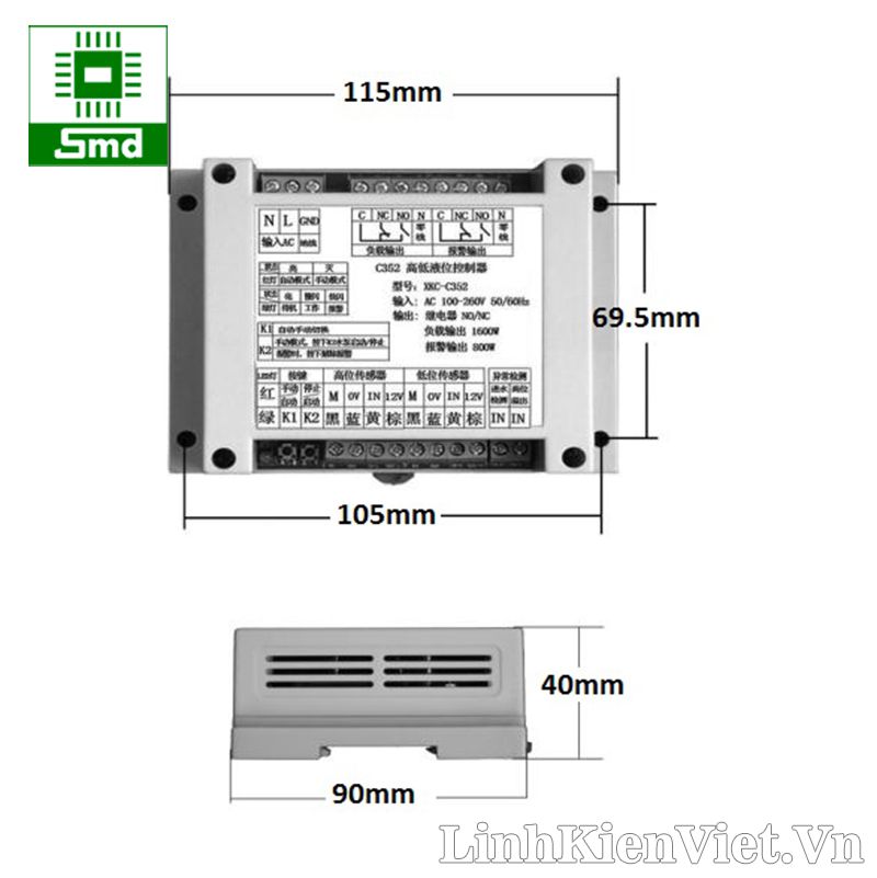 Bộ điều khiển mức nước tự động XKC-350-2P 12VDC / Tải 220VAC 800W