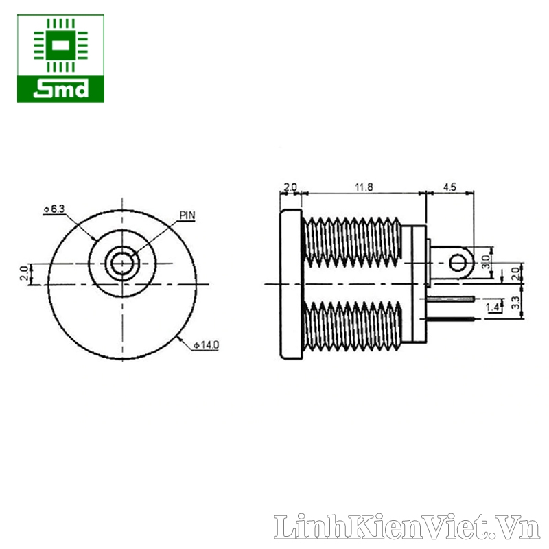 - Chân nguồn DC 5.5x2.1mm (DC-022)