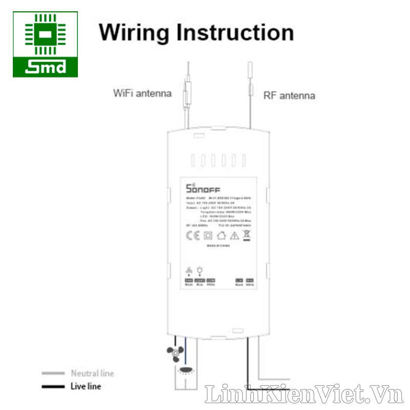 - 1x Công Tắc SONOFF iFan03 Điều Khiển Quạt Trần và Đèn Qua Wifi