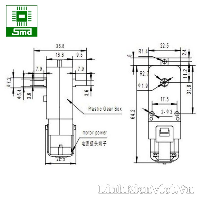 1. Động cơ giảm tốc V1 (Màu vàng 1:48)