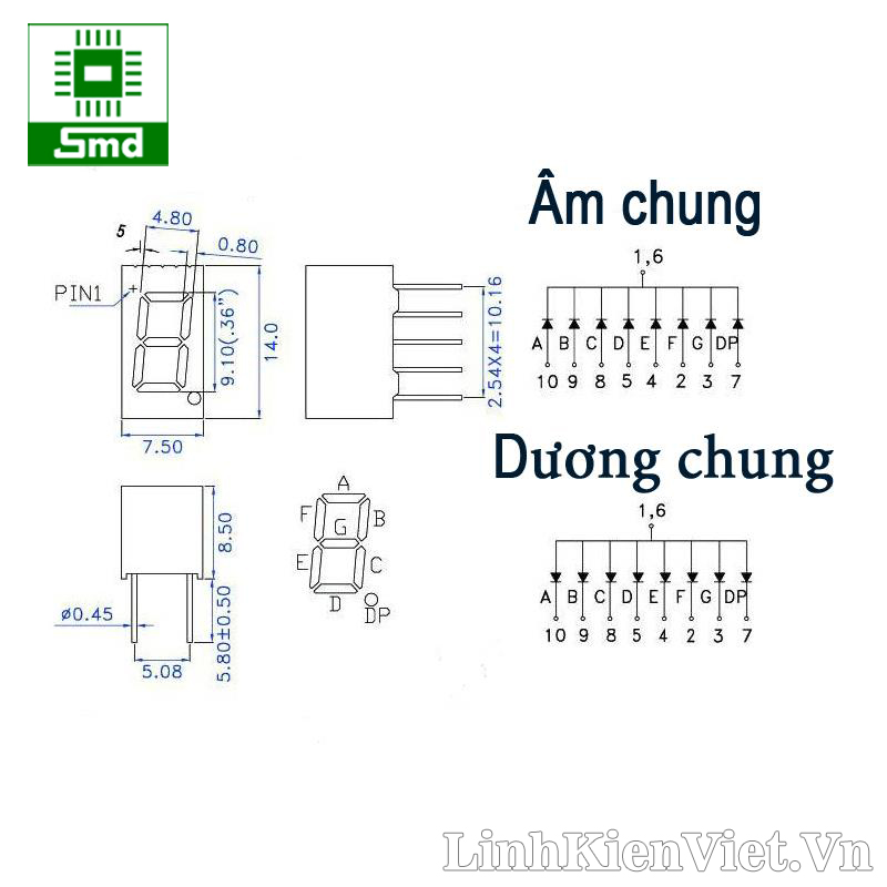 1. Led 7 thanh 0.36 x1 Dương chung (RED)