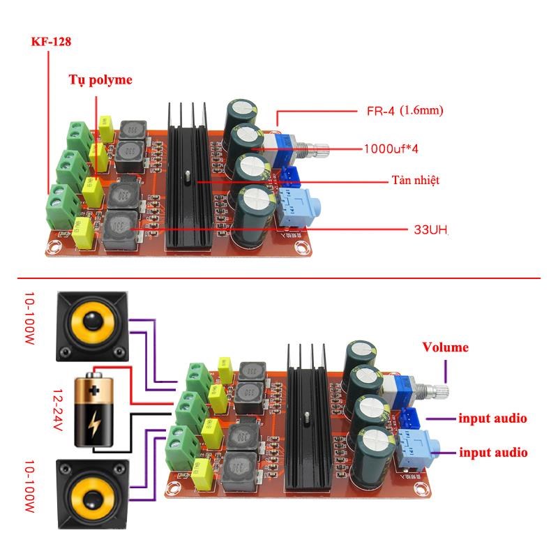 1. Module khuếch đại âm thanh ClassD 2x120W (Không chiết áp)