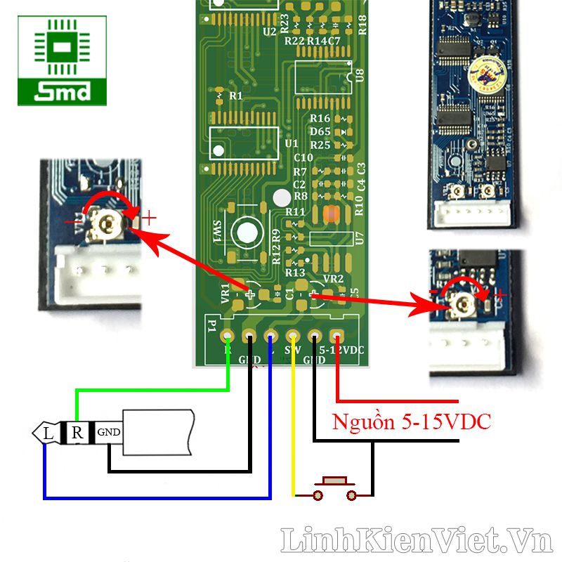 - VR1, VR2 để chỉnh độ nhạy của cột led 1, cột led 2