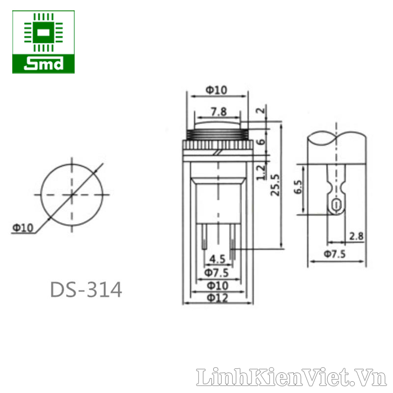 - Nút nhấn DS-314 10mm (Màu đỏ)
