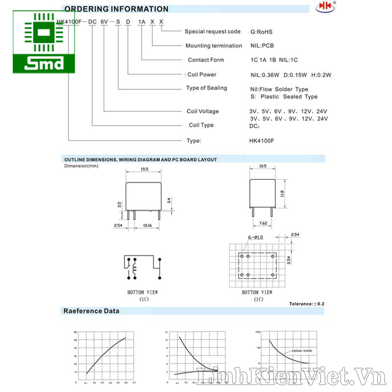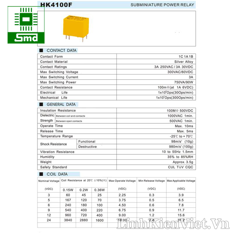 - Relay HUIKE hK4100F-DC12V-SHG (3A - 6 chân)