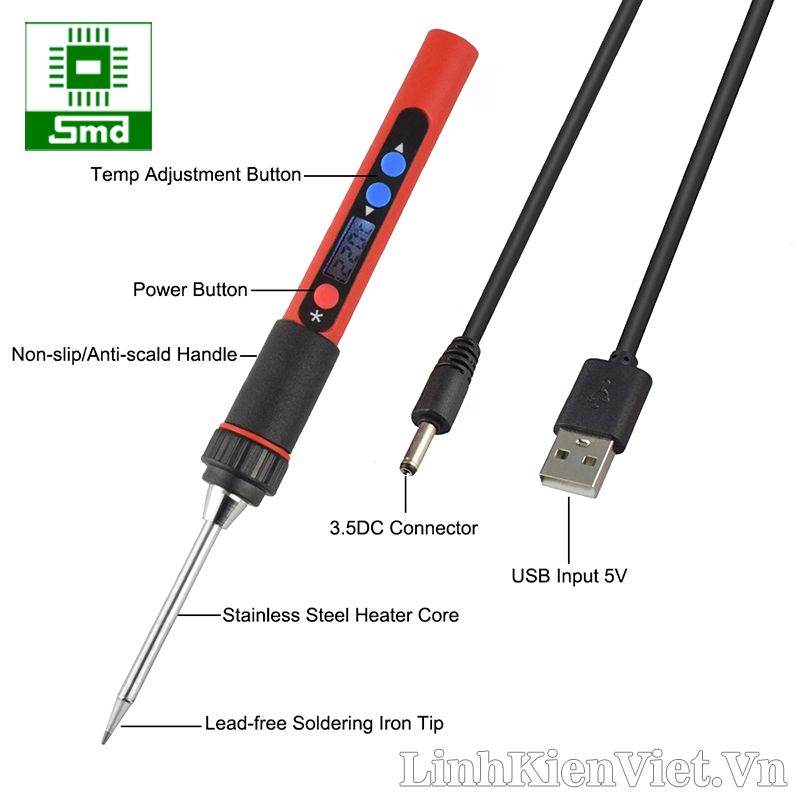 Tay hàn USB có chỉnh nhiệt + hiển thị PX-988, 5V2A