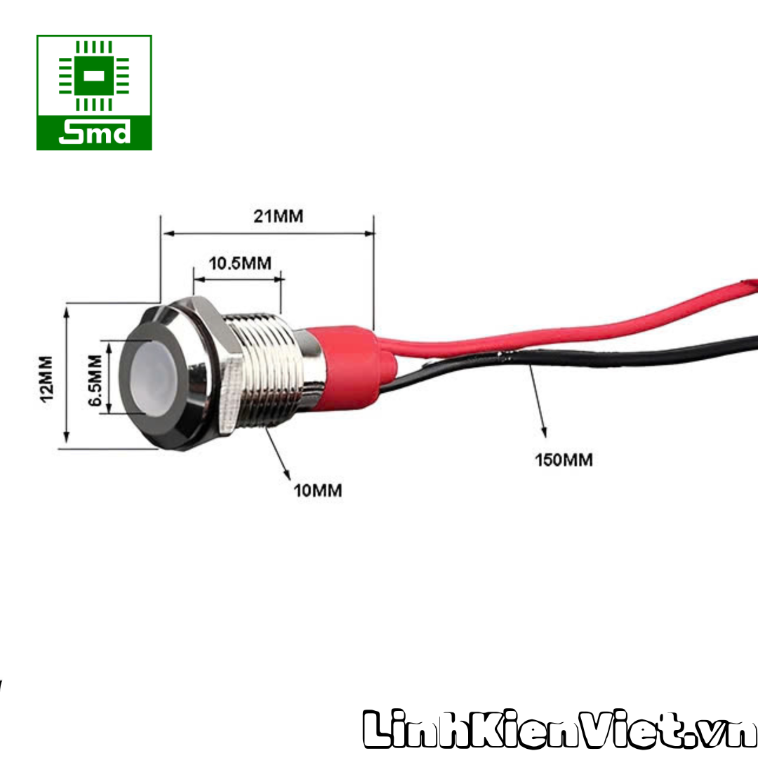 (10mm 3-9V) Đèn led báo nguồn chống nước IP67 vỏ kim loại 3-9V Các màu Đỏ, Xanh Lá, Xanh Dương, Vàng ,Trắng