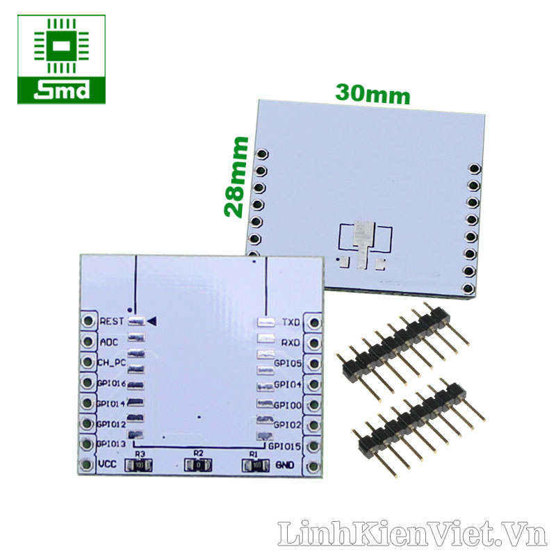 Đến module ESP Adapter ESP-07 ESP-12 ESP-12E Giúp việc nghiên cứu phát triển và sửa chữa trở nên dễ dàng hơn. Ta chỉ cần hàn phần module 1 lần vào Adapter rồi thoải mái kết nối module với các thiết bị khác trong các dự án mà không cần hàn trực tiếp module lên PCB.