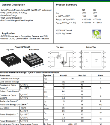 - AO4832 Dual N-Channel 10A - 30V 13 miliom SOP-8