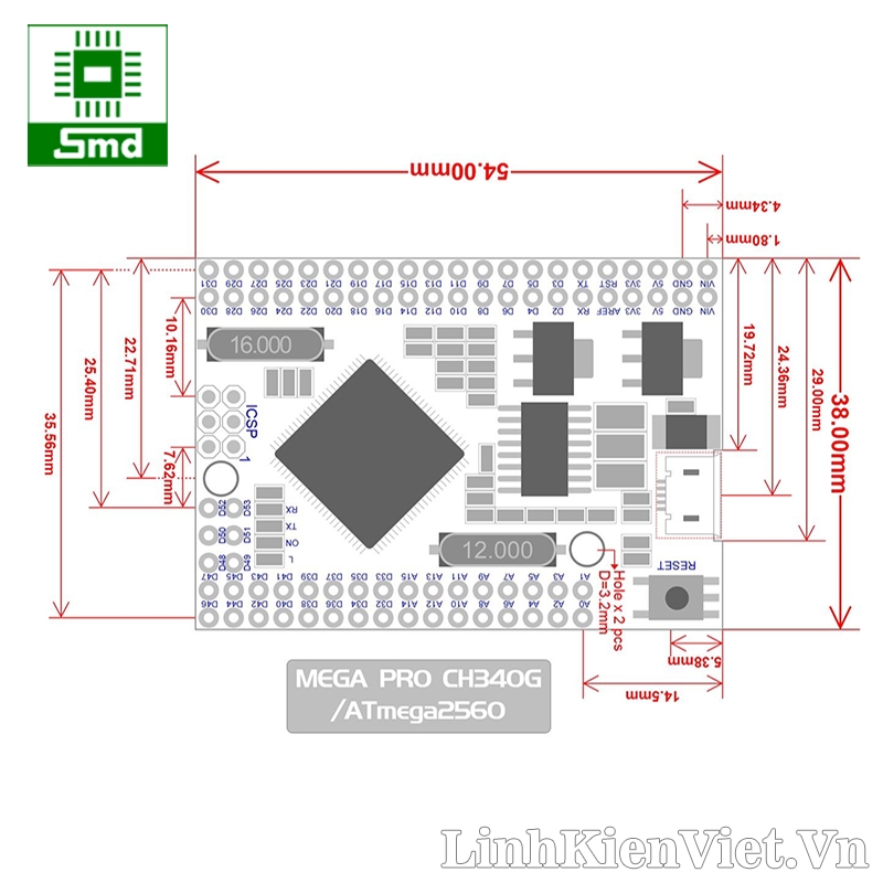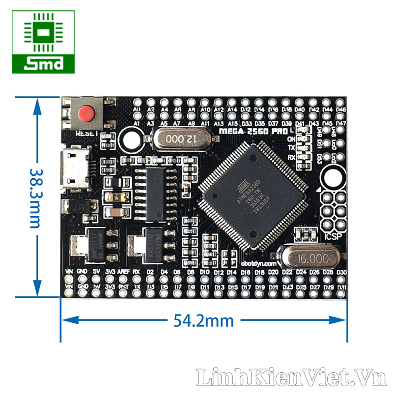 - Số chân Digital: 54 (hỗ trợ 15 chân PWM)