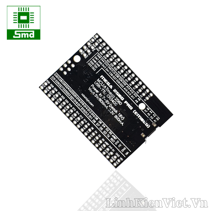 Arduino Mega 2560 Pro (Embed) là phiên bản thu nhỏ của Arduino Mega 2560, vì cùng sử dụng chung vi điều khiển trung tâm ATmega2560-16AU, thạch anh 16Mhz và bootloader nên mạch có chức năng, số chân GPIO và cách sử dụng tương tự như Arduino Mega 2560, mạch thích hợp cho các dự án sử dụng Arduino Mega 2560 nhưng cần độ nhỏ gọn, tiện lợi, mạch có chất lượng gia công tốt, độ bền và độ ổn định cao.