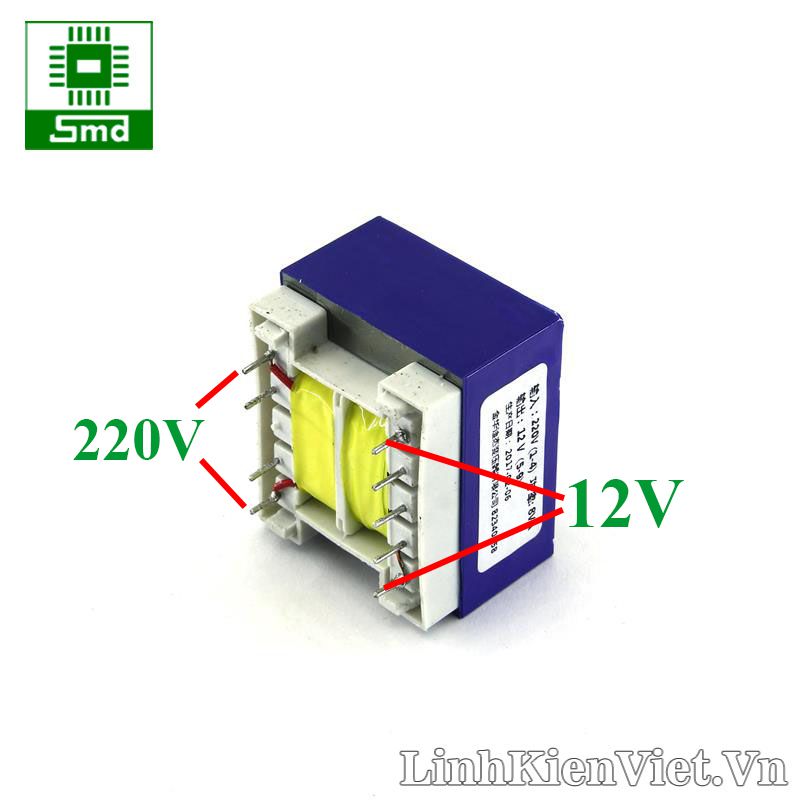 - Biến áp 220V-12V (8W-650mA) có chân hàn PCB