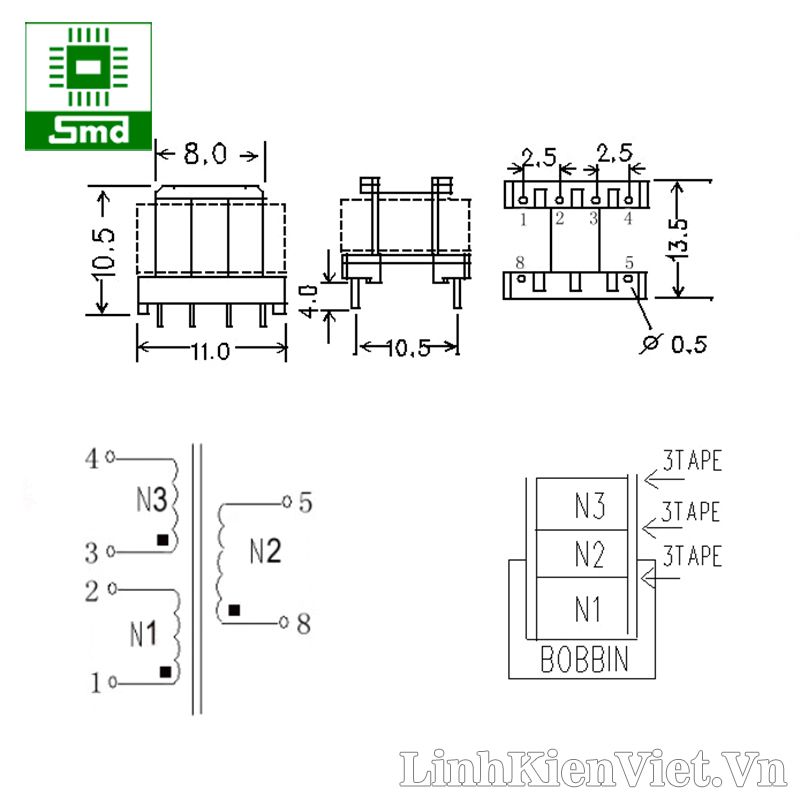 - Biến áp xung EE10-Q8 5VDC-450mA