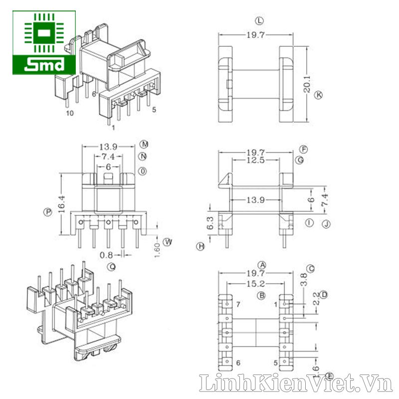 Biến áp xung EF20 8.4V-2A 12V-1A