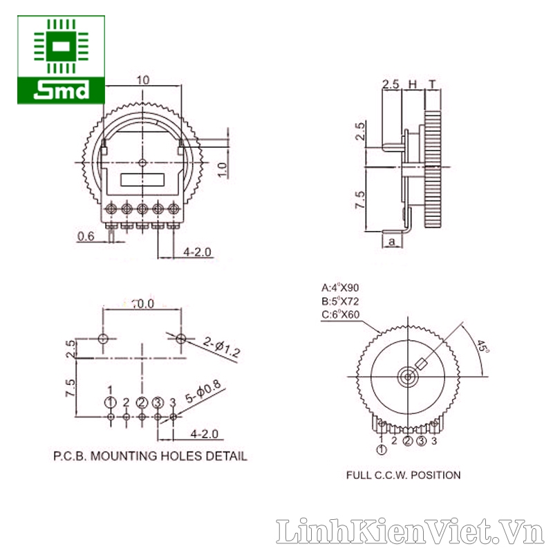 1. Biến trở 16X2MM 5 Chân - 10K