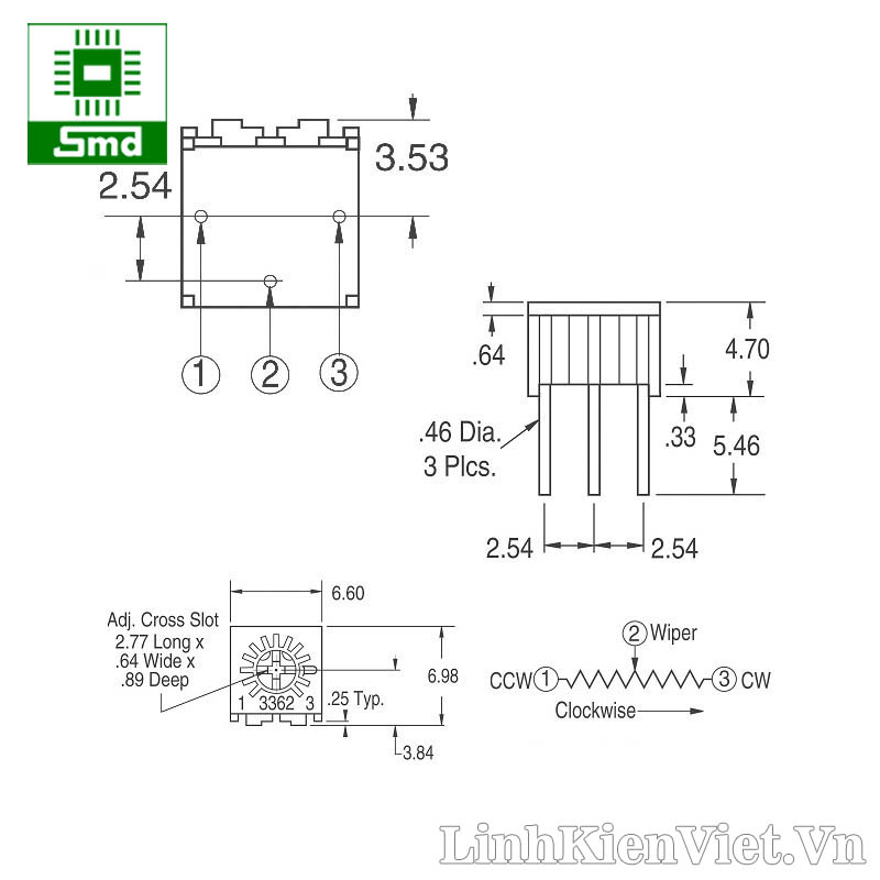 - Biến trở nhựa vuông đứng 3362P là một loại biến trở tinh chỉnh dùng để điều chỉnh giá trị điện trở theo ý muốn trong các mạch điện tử. .