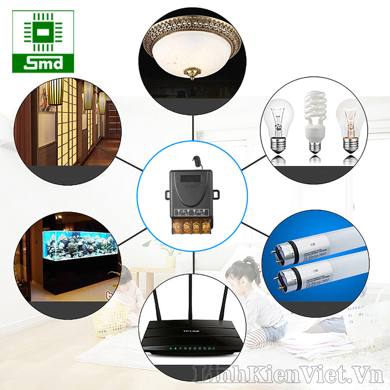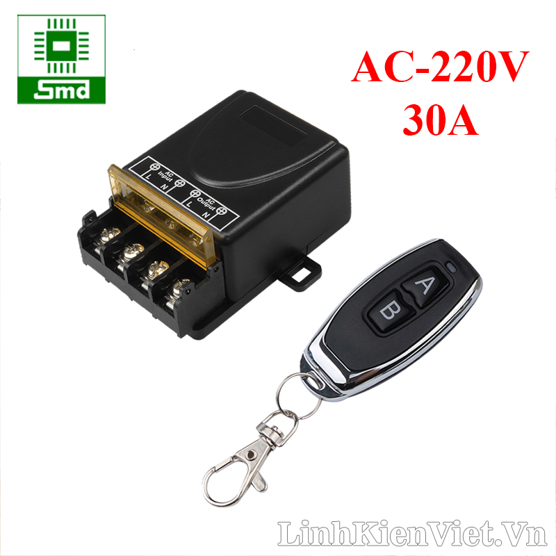 Bộ công tắc điều khiển từ xa công suất cao dùng để điều khiển đóng ngắt thiết bị điện từ xa như: đèn, quạt, máy bơm nước, với công suất tải tối đa 3000W hoặc có dòng khởi động tối đa 30A