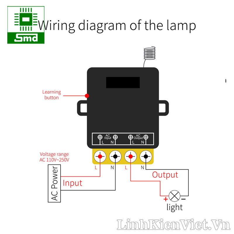 + Chế độ nhấn nhả (bấm giữ nút mạch ON, nhả tay ra mạch OFF): Bấm nút trên mạch 1 lần, đèn LED sáng liên tục >> bấm phím cần học trên tay phát >> LED nháy 3 lần >> học thành công.