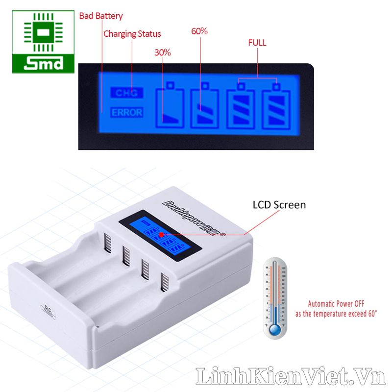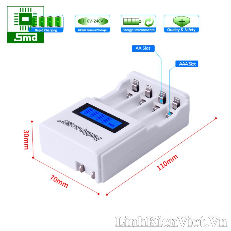 Bộ sạc Doublepow 4 pin AA AAA hiển thị LCD K98