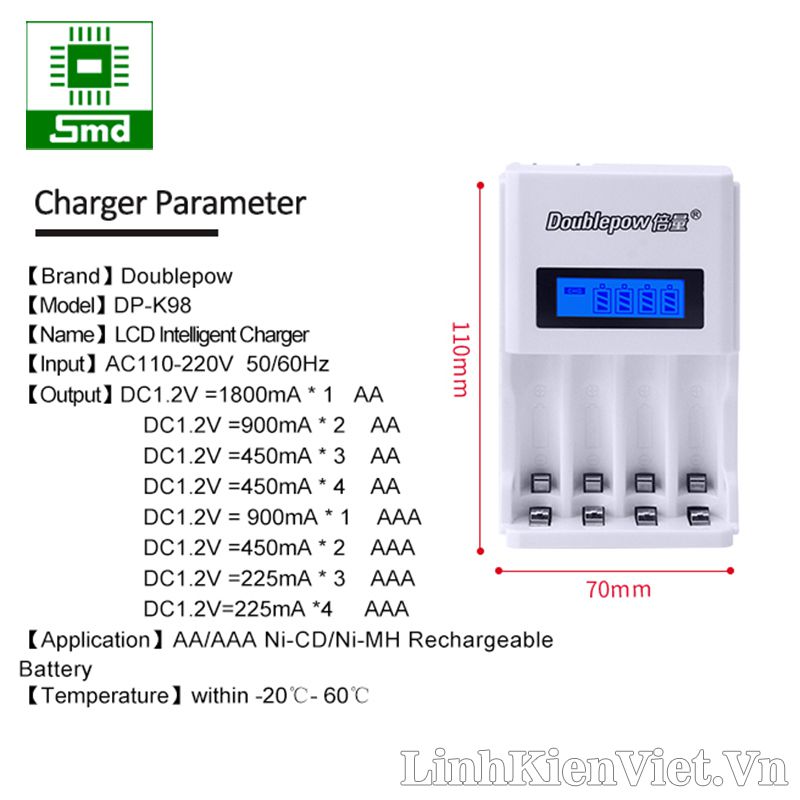 - 1x Bộ sạc Doublepow 4 pin AA AAA hiển thị LCD K98