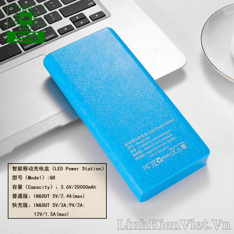 Box sạc dự phòng 8 cell LED hỗ trợ sạc nhanh QC3.0