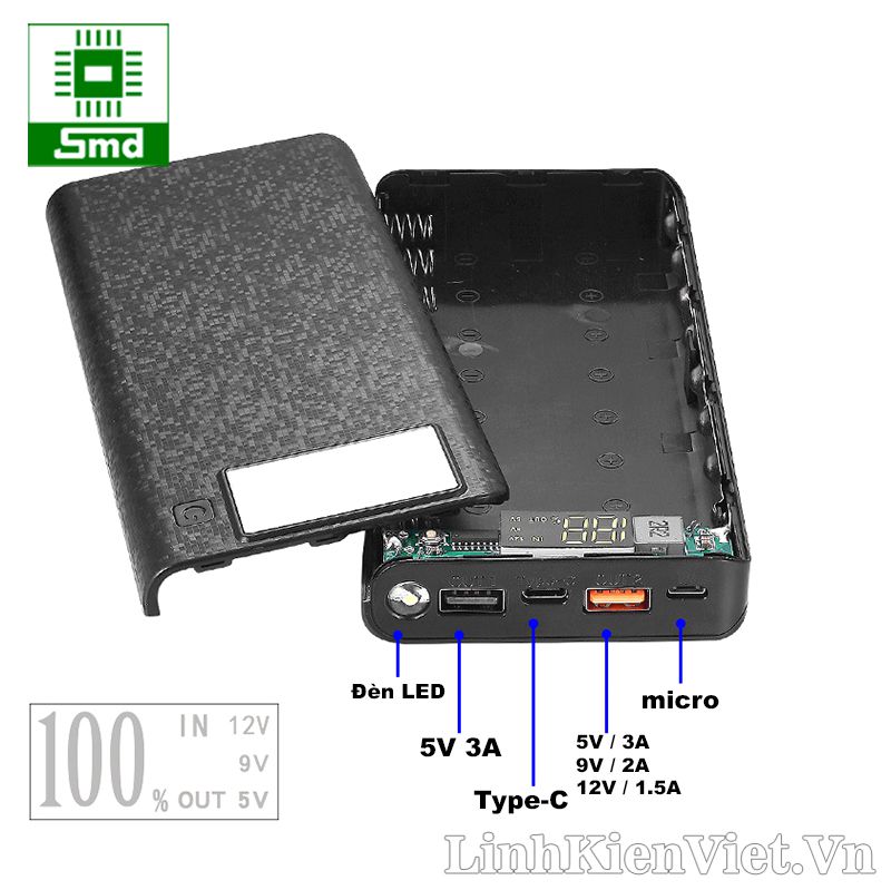 Box sạc dự phòng giúp tận dụng các cell pin 18650 từ laptop cũ để tạo một sạc dự phòng sạc cho các thiết bị điện tử.