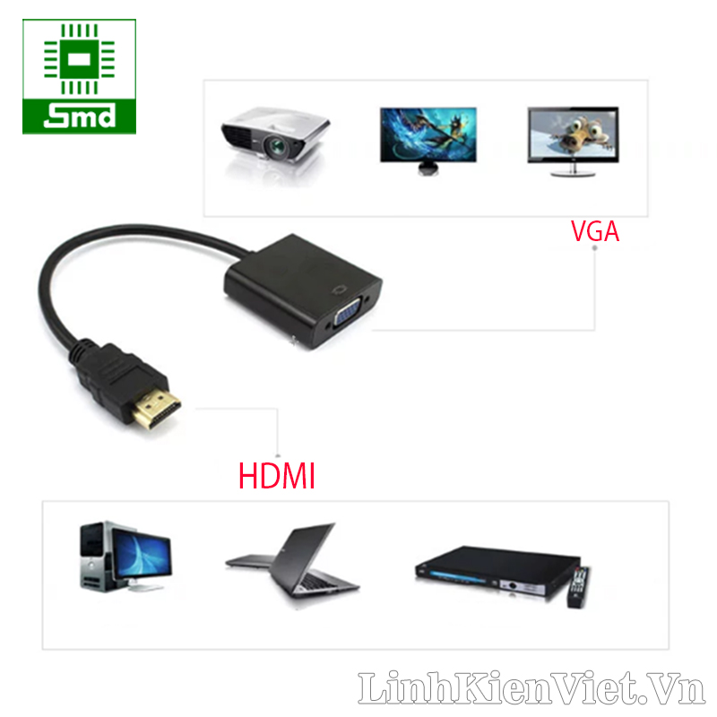 - Cáp chuyển đổi HDMI - VGA đem đến khả năng kết nối trực tiếp Laptop sử dụng cổng HDMI với các thiết bị phát cũ hỗ trợ VGA