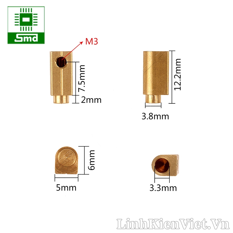 - Chân đồng hàn mạch M3+12.2mm