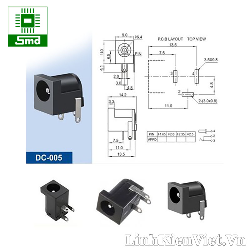- Chân nguồn DC cái 5.5x2.1mm (DC005)