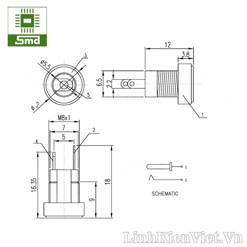 - Chân nguồn DC 5.5x2.1mm (DC-022B)