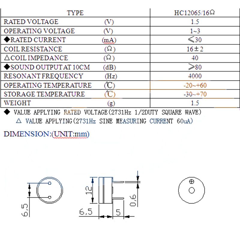 - Còi chíp không ic 3V 16R 12x6.5mm (12065)