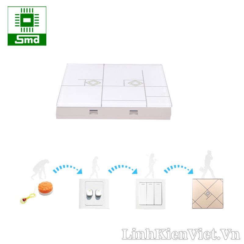 Công tắc cảm ứng gắn tường phát sóng RF 433MHz (2 nút nhấn) để điều khiển xa đèn, ổ cắm, công tắc, kiếu cảm ứng mặt vuông 86mm.
