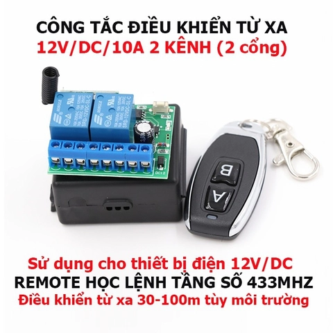Bộ Điều khiển RF 2 Relay 10A + tay phát AB Công tắc điều khiển từ xa RF 10A,12V 2 kênh 433 MHz