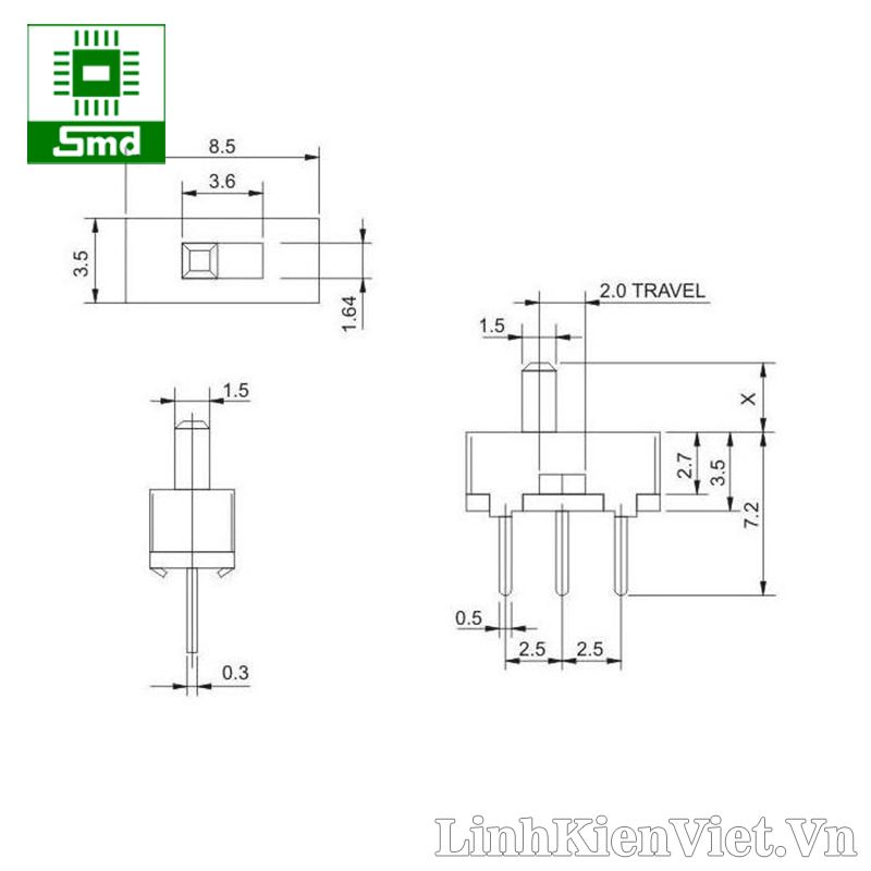- Công tắc gạt 3 chân SS12D00VG5 (chuôi dài 5mm)