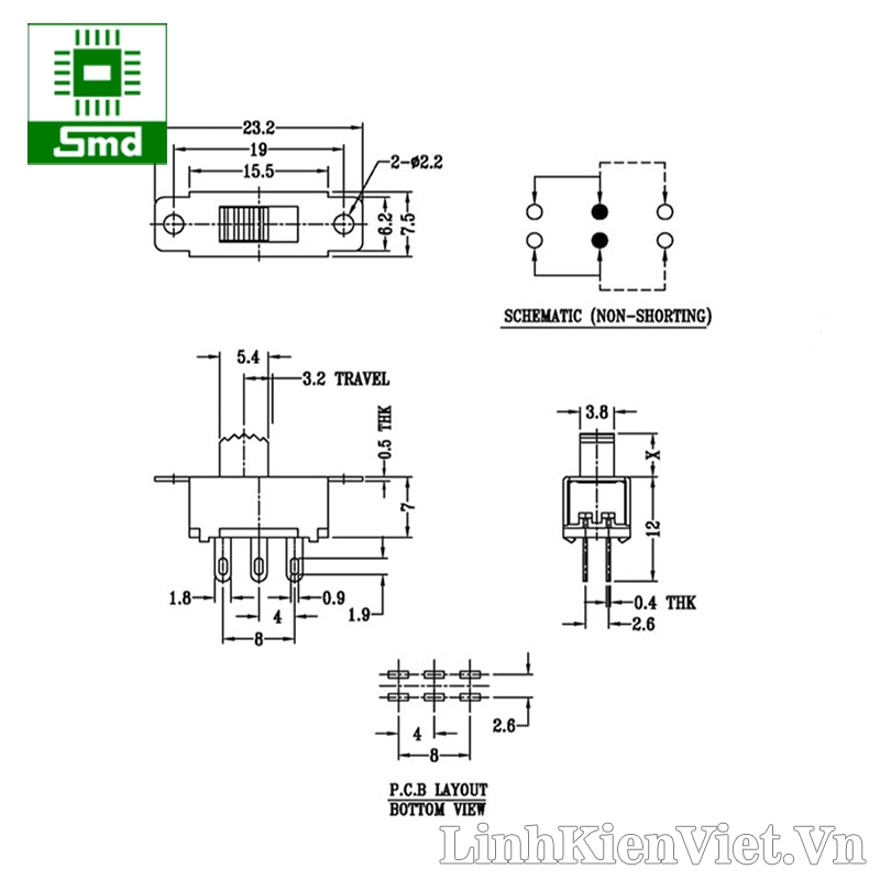 - Công tắc gạt 6 chân SS22F32 G5 (cần cao 5mm)