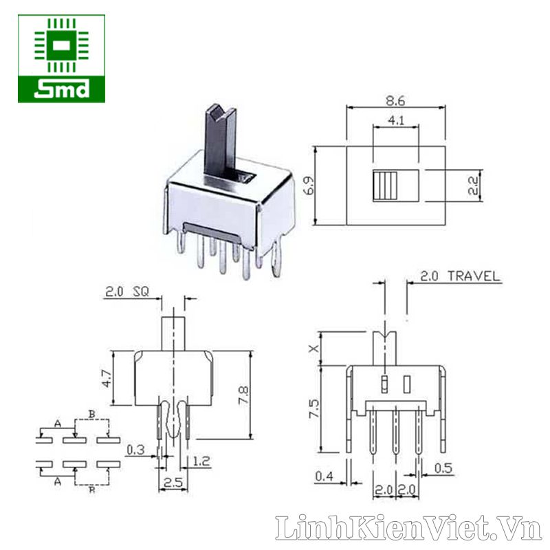 Công tắc gạt 7 chân SS22D07 (4mm)