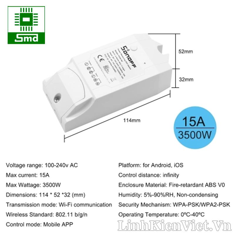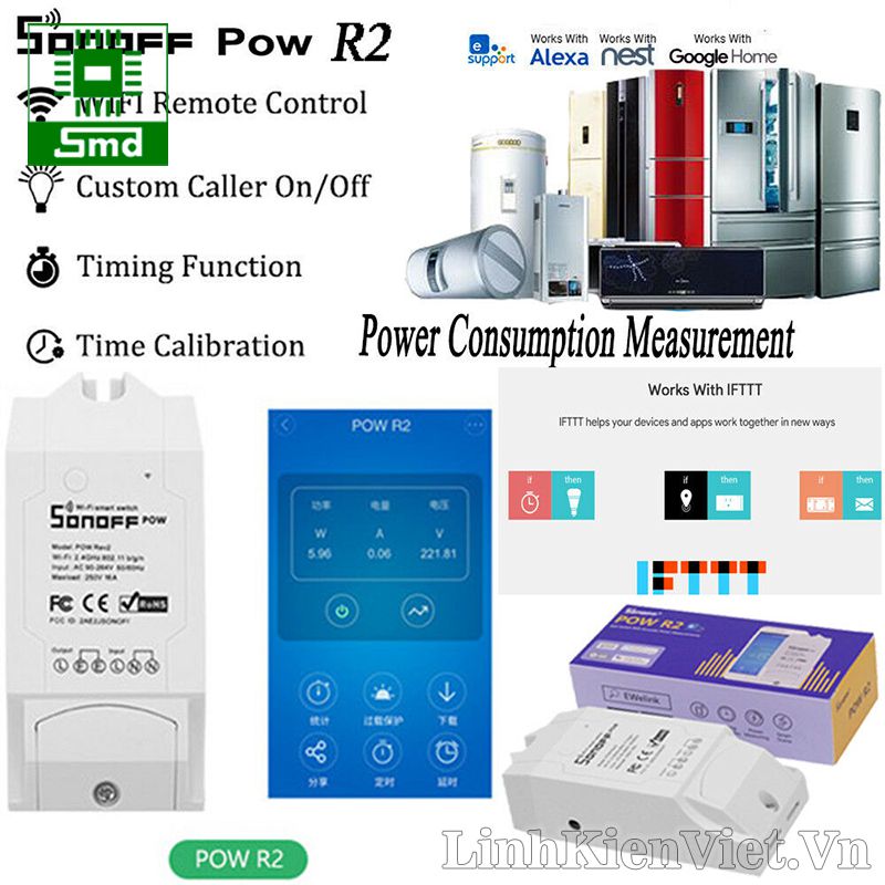 - 1x Công tắc thông minh SONOFF POW R2 điều khiển từ xa qua Wifi 3G 4G