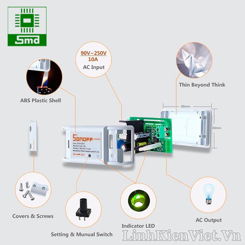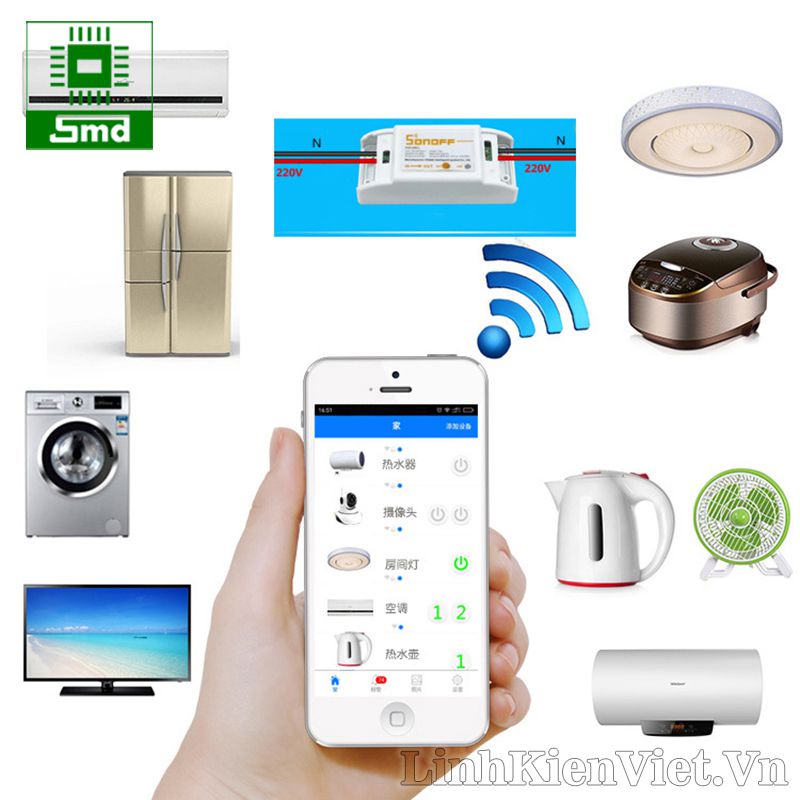 Công tắc thông minh SONOFF Basic QUỐC TẾ được sử dụng để điều khiển thiết bị từ xa qua internet ở bất cứ nơi nào có kết nối mạng WiFi 3G 4G