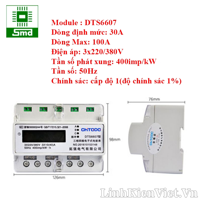 - Công tơ điện tử 3 pha DTS7026 50Hz 30(100)A