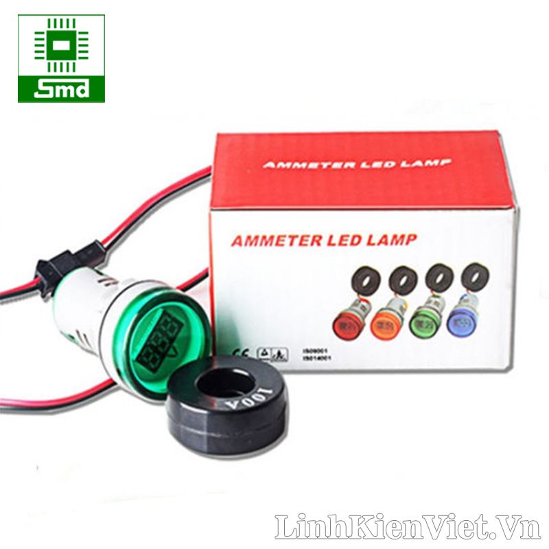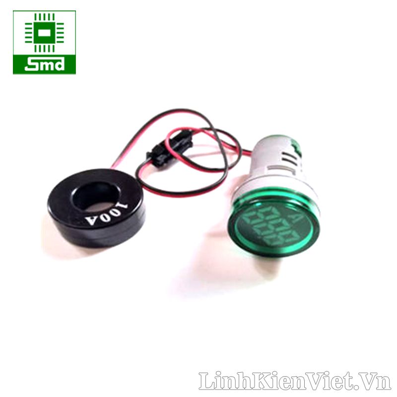 Đèn led báo dòng AC 0-100A AD101 220V (loại tròn ) - Màu xanh lá