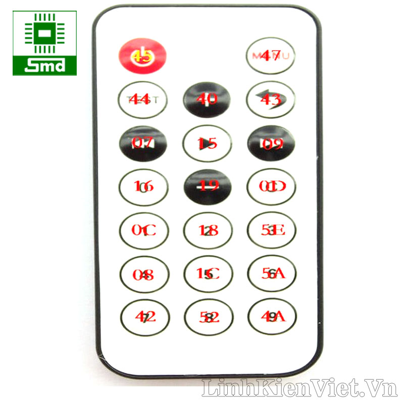 Điều khiển hồng ngoại 20 phím có kích thước nhỏ gọn với 7 hàng và 3 cột, thiết kế để điều khiển các thiết bị phát media như loa USB, đầu đĩa, CarMP3,...
