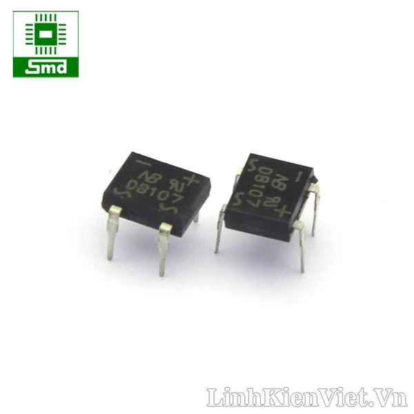 - Diode cầu DB107 DIP4 là diode chỉnh lưu có cấu tạo gồm 4 diode được đóng gói trong một gói duy nhất, gồm 4 chân, được thiết kế với vỏ nhôm, tản nhiệt tốt. Dùng để chuyển đổi điện áp AC - DC