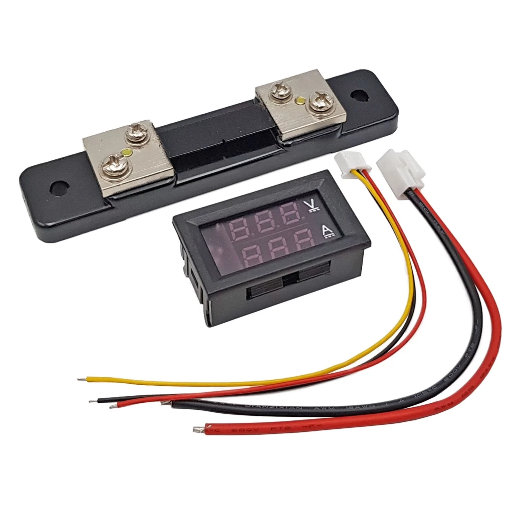 - Đây là mẫu đồng hồ đo dòng đo áp DC hiển thị bằng LED 7 thanh có thể hoạt động như một vôn kế điện tử , Đồng hồ có thể đo dòng điện lên tới 100A. Đồng hồ được ứng dung rất rộng rãi dùng để đo ắc quy, dòng động cơ và các thiết bị điện khác có tiêu thụ dòng lớn, Ngoài ra đồng hồ còn được dùng rất nhiều trong các tủ điện để giám sát dòng điện và điện áp hoạt động của các thiết bị điện