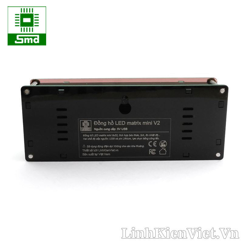 Đồng hồ LED Matrix mini V2 là sản phẩm đồng hồ do SMD electronics nghiên cứu, phát triển và sản xuất. Với tiêu chí mang lại những giá trị tốt nhất với giá thành hợp lí nhất, sản phẩm Đồng hồ LED Matrix mini V2 đã giữ lại những ưu điểm của phiên bản V1 và cải thiện được các khuyết điểm còn tồn tại. Đem lại một sản phẩm nhỏ gọn, chất lượng và thẩm mỹ.