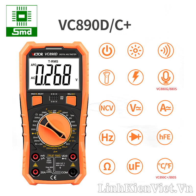 ĐỒNG HỒ VẠN NĂNG VICTOR VC890D với nhiều chức năng nổi trội như tự động tắt khi không sử dụng, chống ngược......