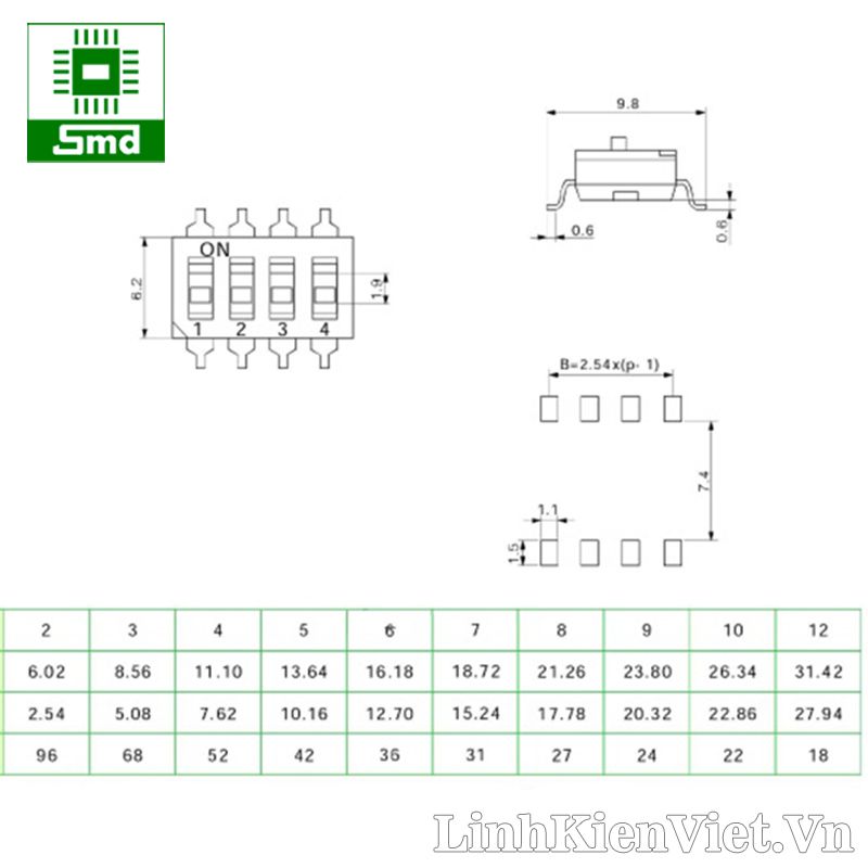 Gạt 4 bit KE-04 (SMD 2.54mm)