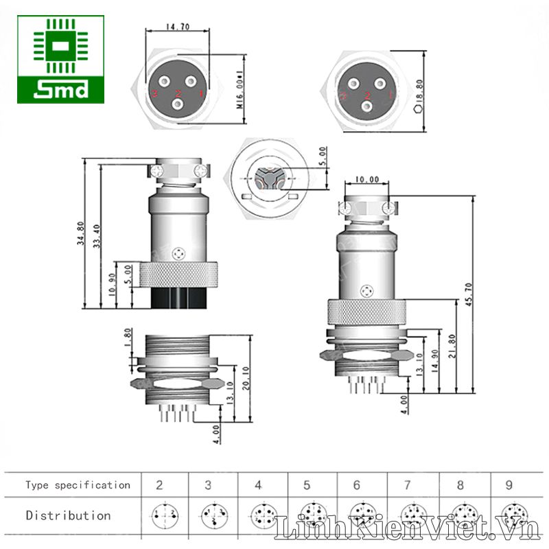 - GX16-10P Đầu nối nhanh 10 chân vỏ sắt 16mm