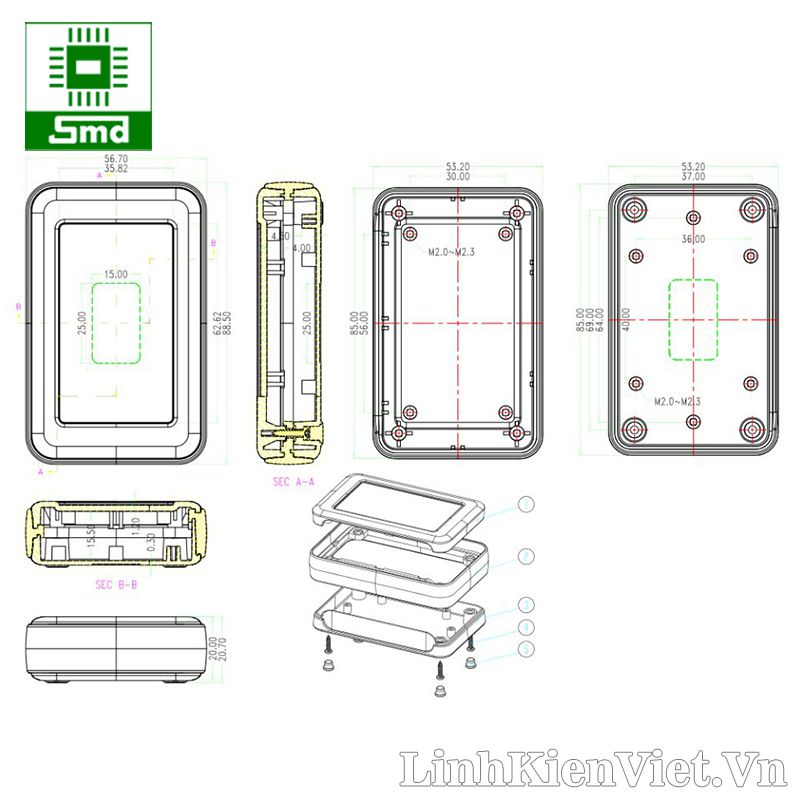- Hộp nhựa 57x89x20mm BMC70013-A4
