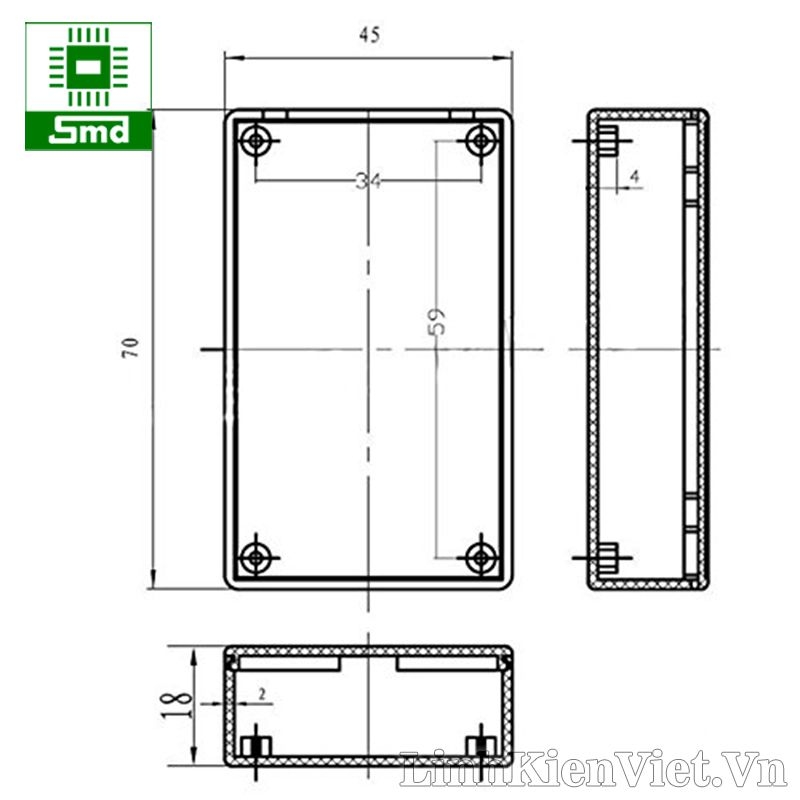1. Hộp nhựa 70x45x18mm