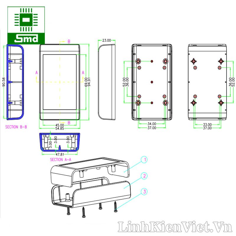 - Hộp nhựa 95x55x23mm BMD60002-A9